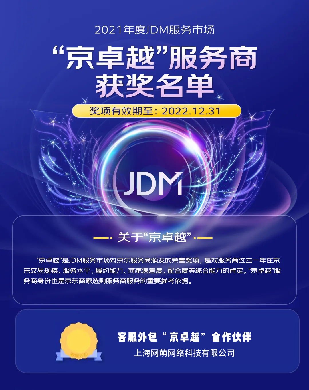 上海網萌榮獲2021年度JDM服務市場“京卓越”獎